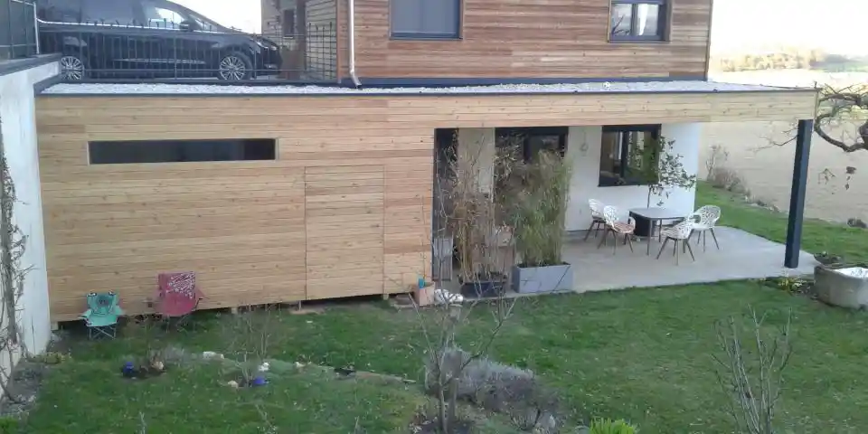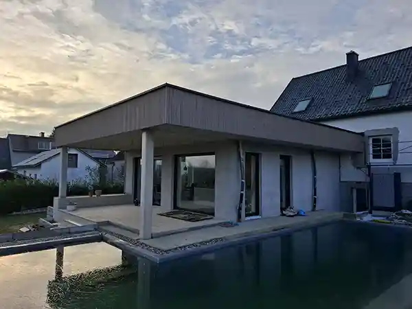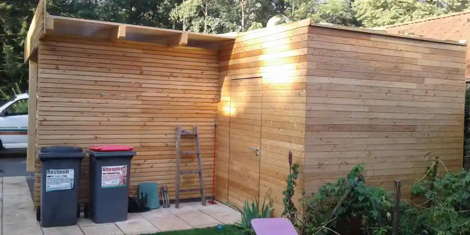 Nach dem kalten und längeren Winter errichteten wir eine Sitzplatzüberdachung für gemütliche Stunden. Die Kombination mit einem praktischen Abstellraum macht das Vorhaben besonders sinnvoll. Das Flachdach würde mit einer Gefälledämmung auf der gehobelten Unterkonstruktion ausgestattet und die Außenverkleidung mit einer schönen Lärchen- Nut+ Feder Schalung versehen.