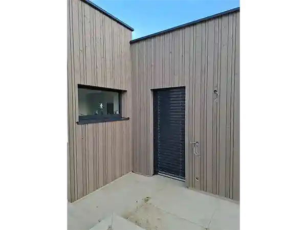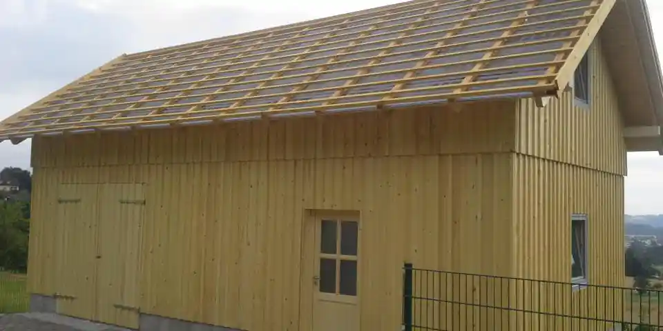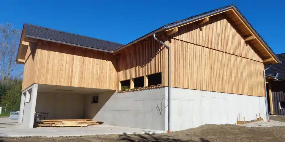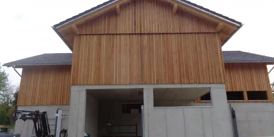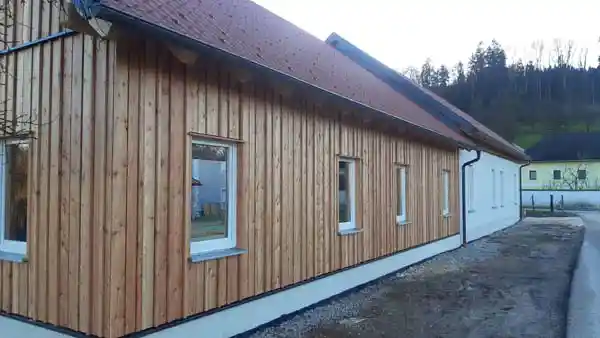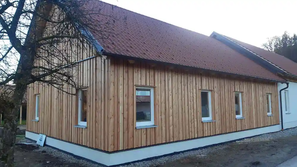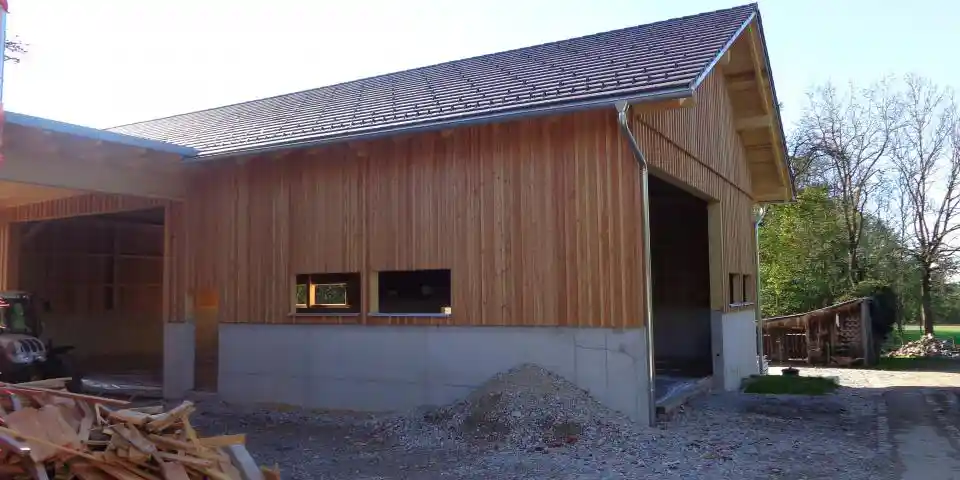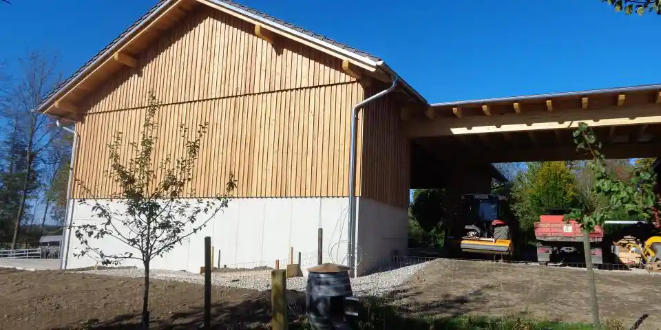 Verkleidung für Maschinenhalle bis edle Lärchenfassade