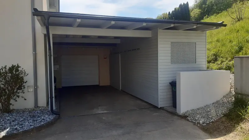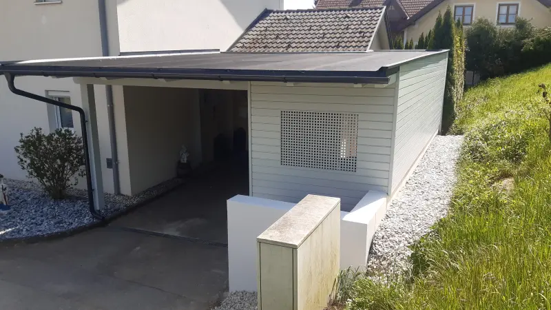 Den offenen und frei bewitterten Vorplatz eines Hauses in Linz- Land nutzten wir mit dieser Kombination optimal aus. Der versperrbare Abstellraum samt Carport bieten nun optimalen Schutz sowohl bei Schnee und Regen, als auch bei Hitze im Sommer. Nun kommt man geschützt von der Haustüre in die Nebenräume. Vielen Dank an die sympathischen Bauleute für diese Aufgabe!